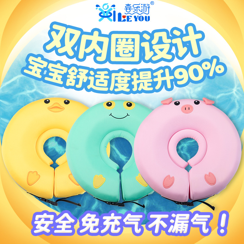 乳幼児用空気注入不要のネックリング水泳リング、赤ちゃん用家庭用プール浮き輪、ネックリング、溺死防止、実用的な新規特許