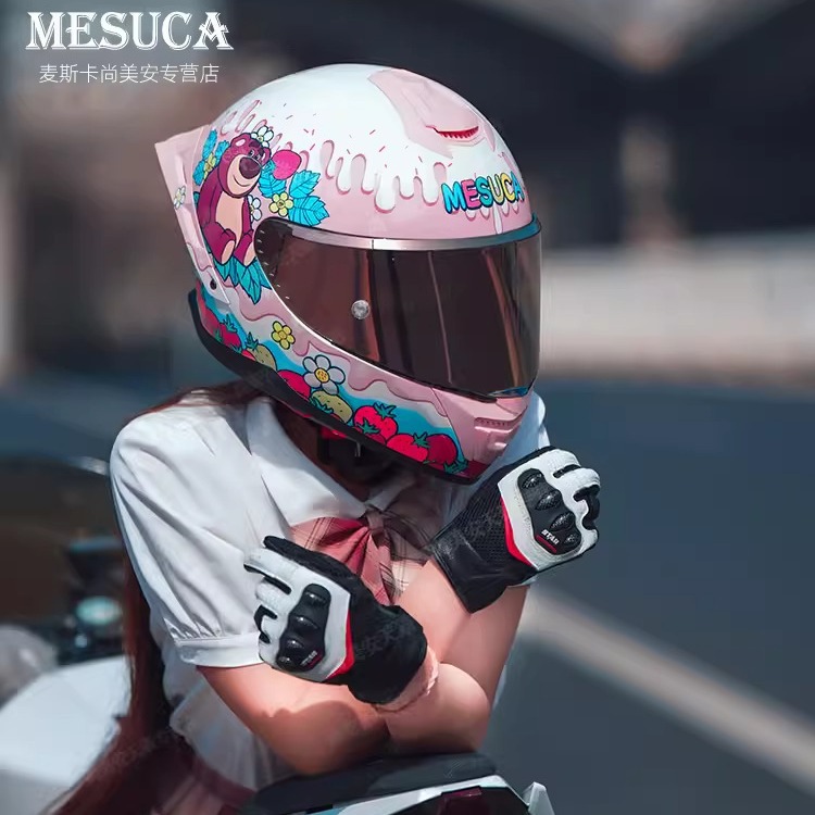 マカのオートバイのヘルメットの女性の双鏡の大きい尾翼の連名KTのイチゴの熊の四季の機関車の全ヘルメットの男の3C認証