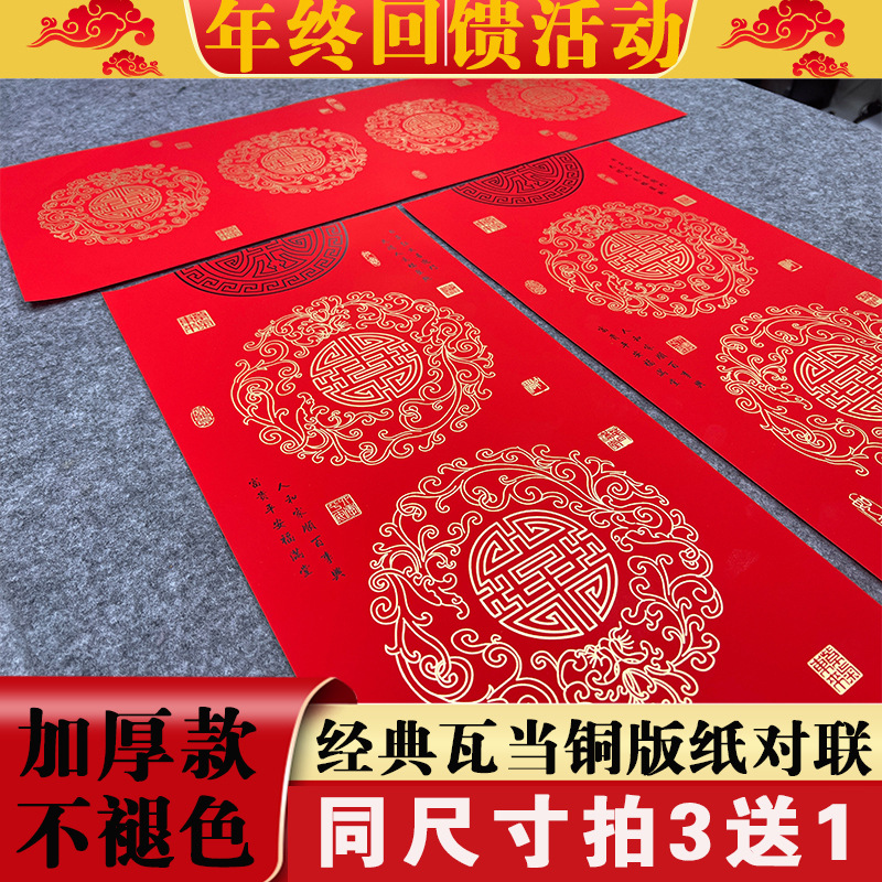 仁義堂の古典的な万年赤銅版紙対句、厚みのある色褪せない七言空白の手書きの赤い紙