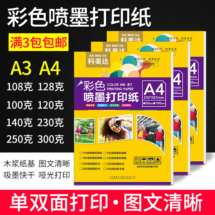 A4カラーインクジェットプリント紙100グラム108g128g250gシングル/両面ホワイト紙A3カラーインクジェット紙
