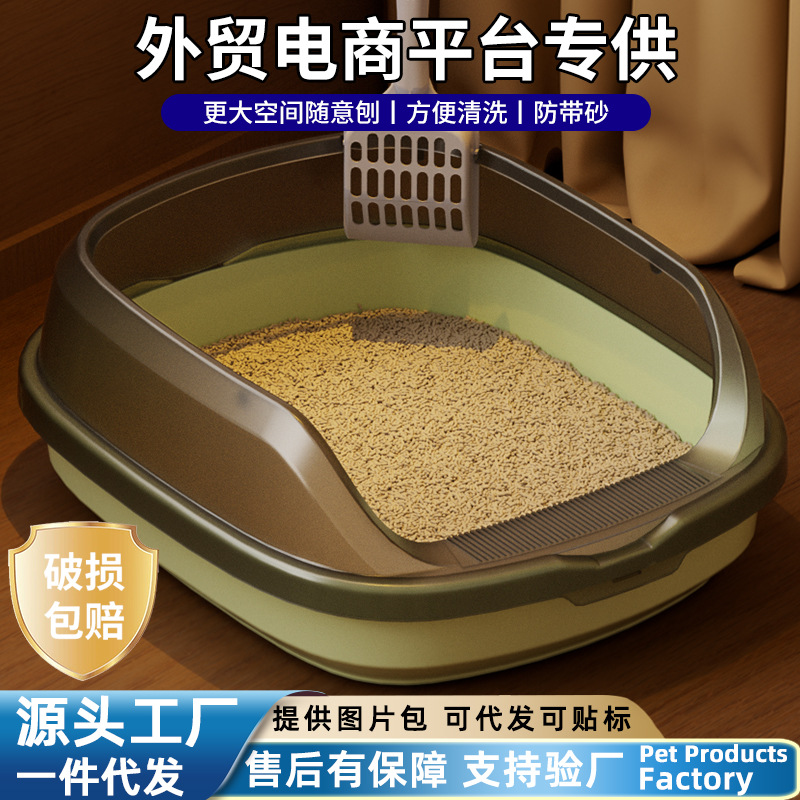 半閉鎖猫砂盆特大号外はね防止猫トイレ特大号オープンペット猫糞盆卸売り