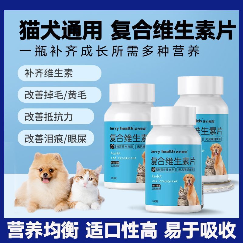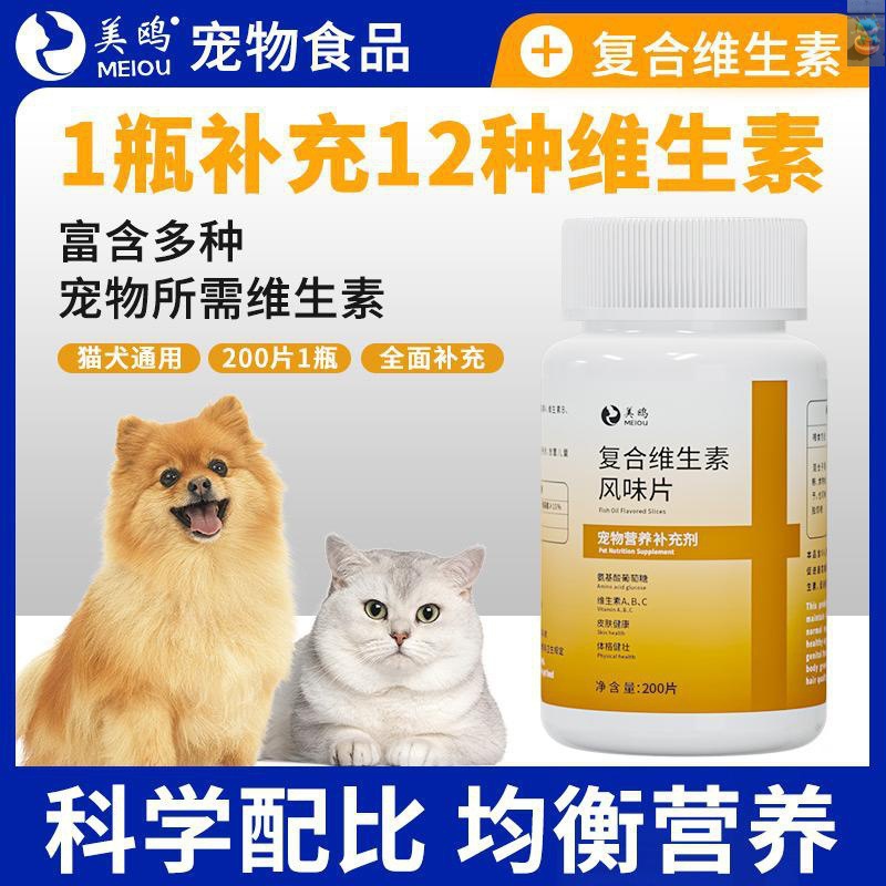 栄養補助食品 ペット用マルチビタミンタブレット 200粒 犬猫用 多次元 猫犬用 ビタミン カルシウム/