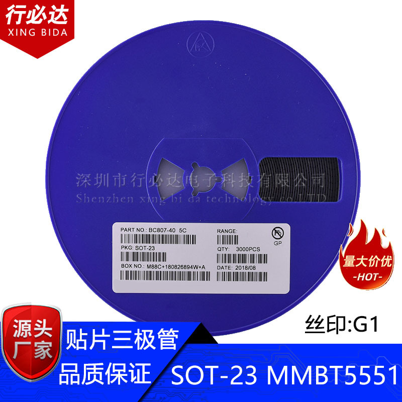 パッチトランジスタso-23 MMBT5551シルク印刷G1 160V 0.6Aの価格が優れています。