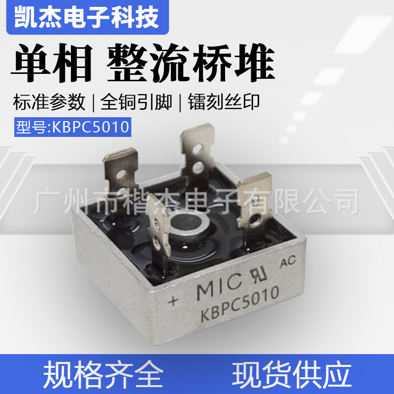 MIC単相整流橋山KBPC5010ハイパワー整流器方橋50A1000V大体積32 * 32mm