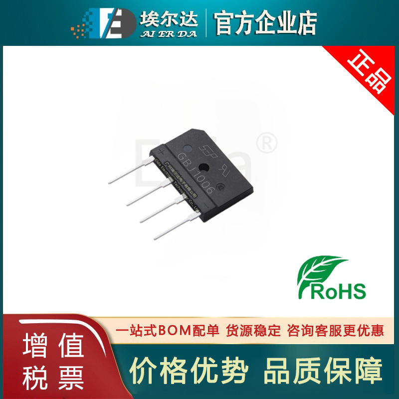 整流フラットブリッジGBJ1006 GBJ1008 GBJ1010 10A1000Vディップ-4単相シリコンブリッジ整流器