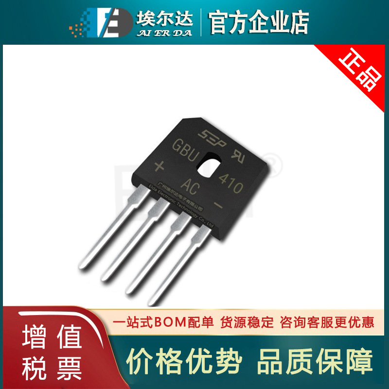ブリッジGBU410 GBU408 GBU406 GBUパッケージDIP4ガラスパッシベーション単相ブリッジ整流器