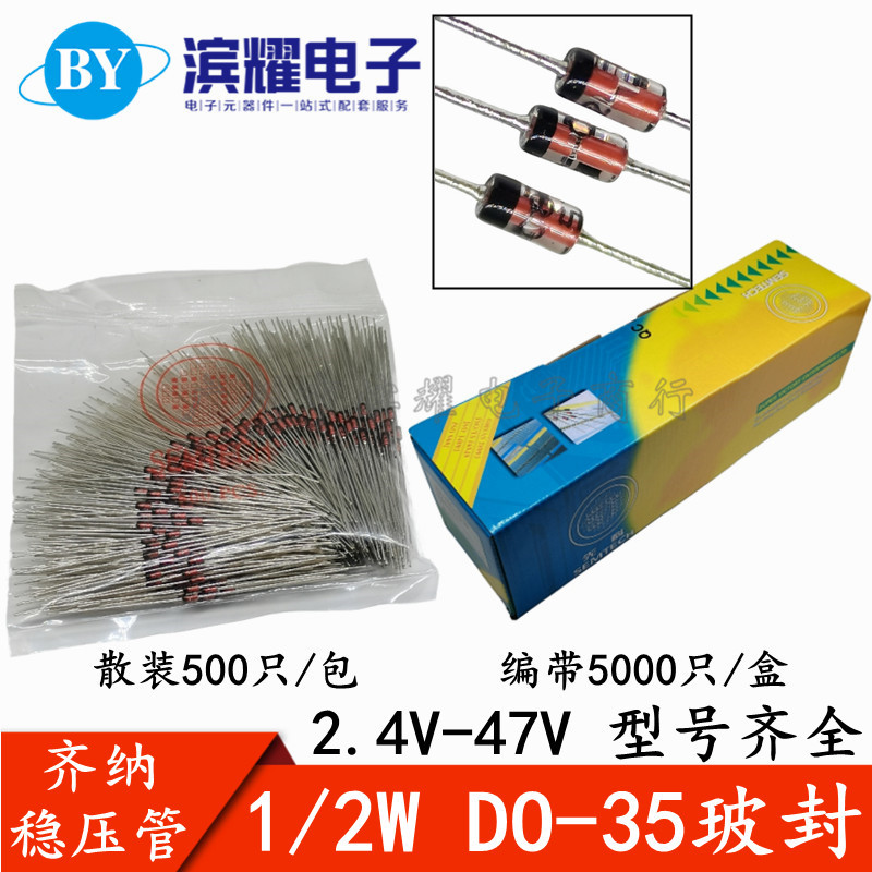 0.5W安定化ダイオード1/2W3V3.3/3.9/4.7/5.1V/6.2/6.8/10/12/15/18/24V