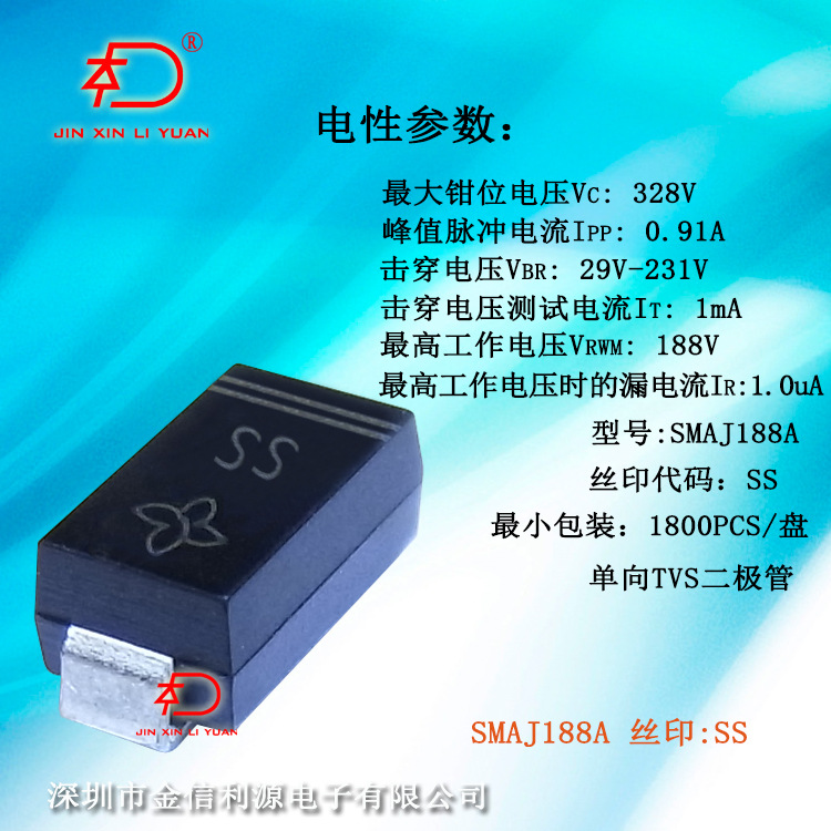 SMAJ188A シルク スクリーン SS 一方向 TVS チューブ | パッケージ SMA 最大クランプ電圧 328V 最大電流 0.91A