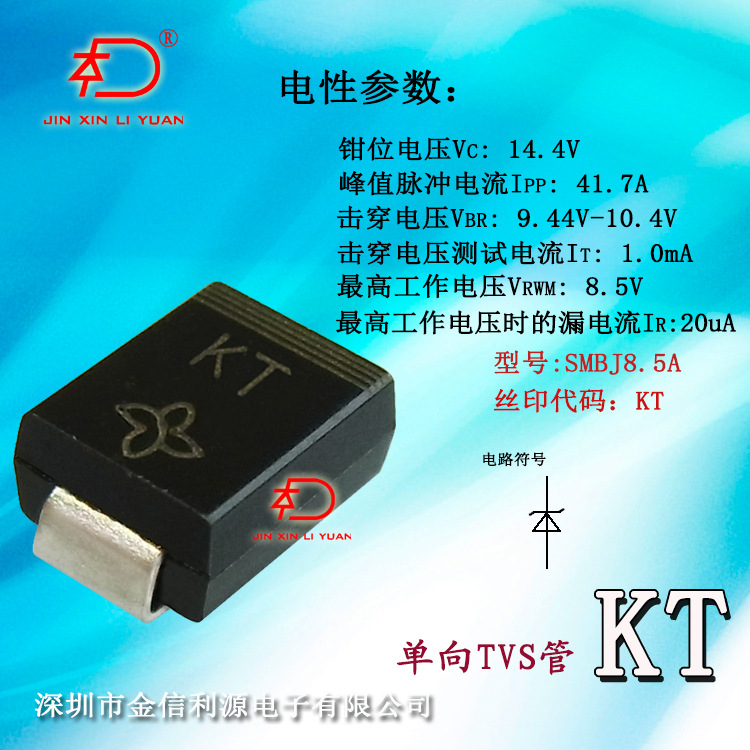 SMBJ8.5A シルク スクリーン KT 単方向 TVS ダイオード | パッケージ SMB クランプ電圧 9.44V ~ 14.4V | 600W (W)