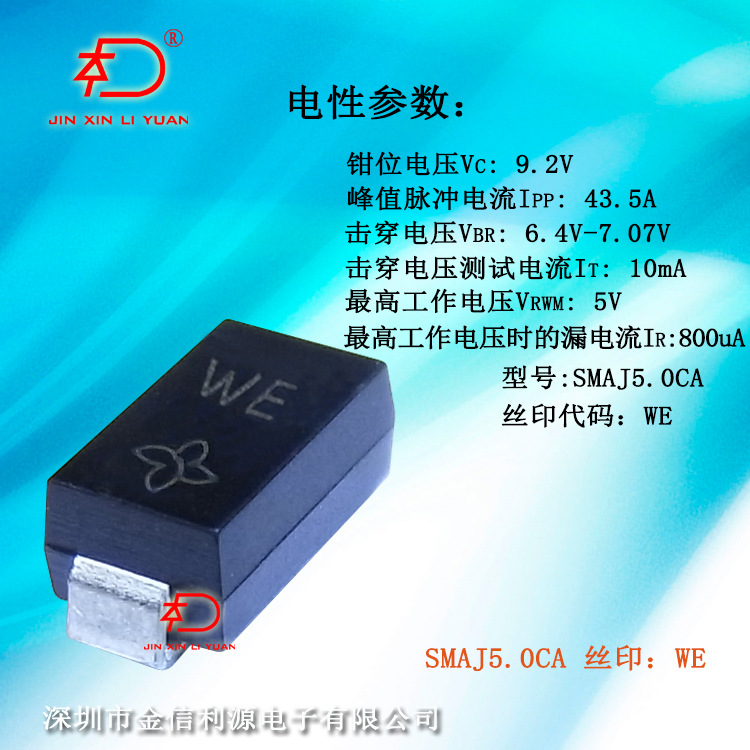 SMAJ5.0CA シルク スクリーン WE 双方向 TVS ダイオード | パッケージ DO-214AC (SMA) | クランプ電圧9.2V