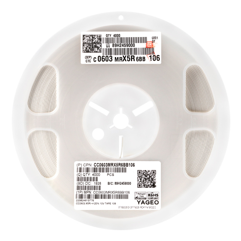 オリジナル 0603 パッチコンデンサ 10uF (106) ±20% 10V X5R CC0603MRX5R6BB106