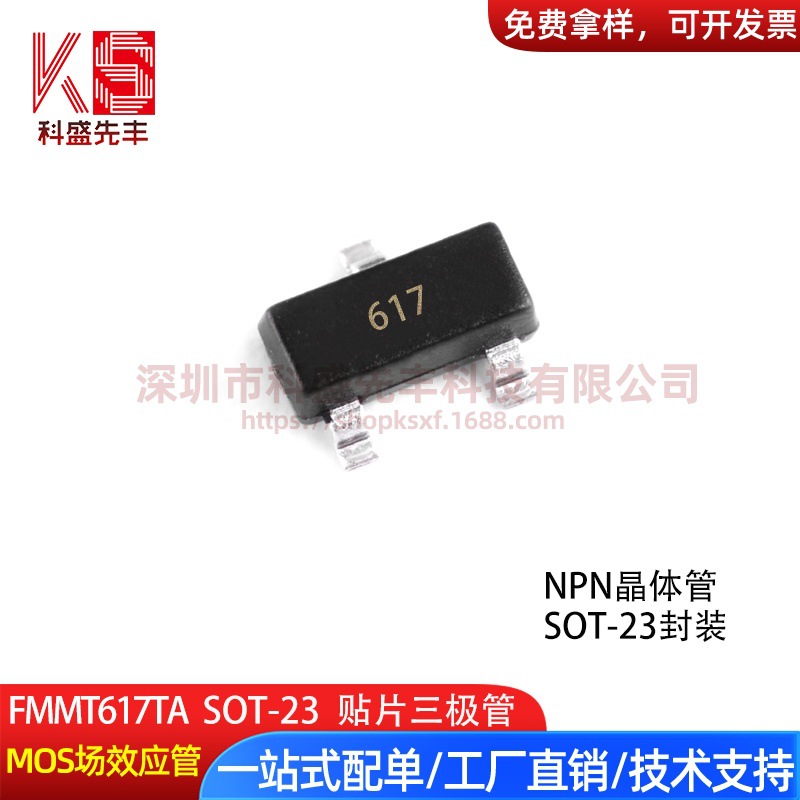 FMMT617TA シルクスクリーン印刷 617 SOT-23 パッチ NPN バイポーラトランジスタの利点在庫あり