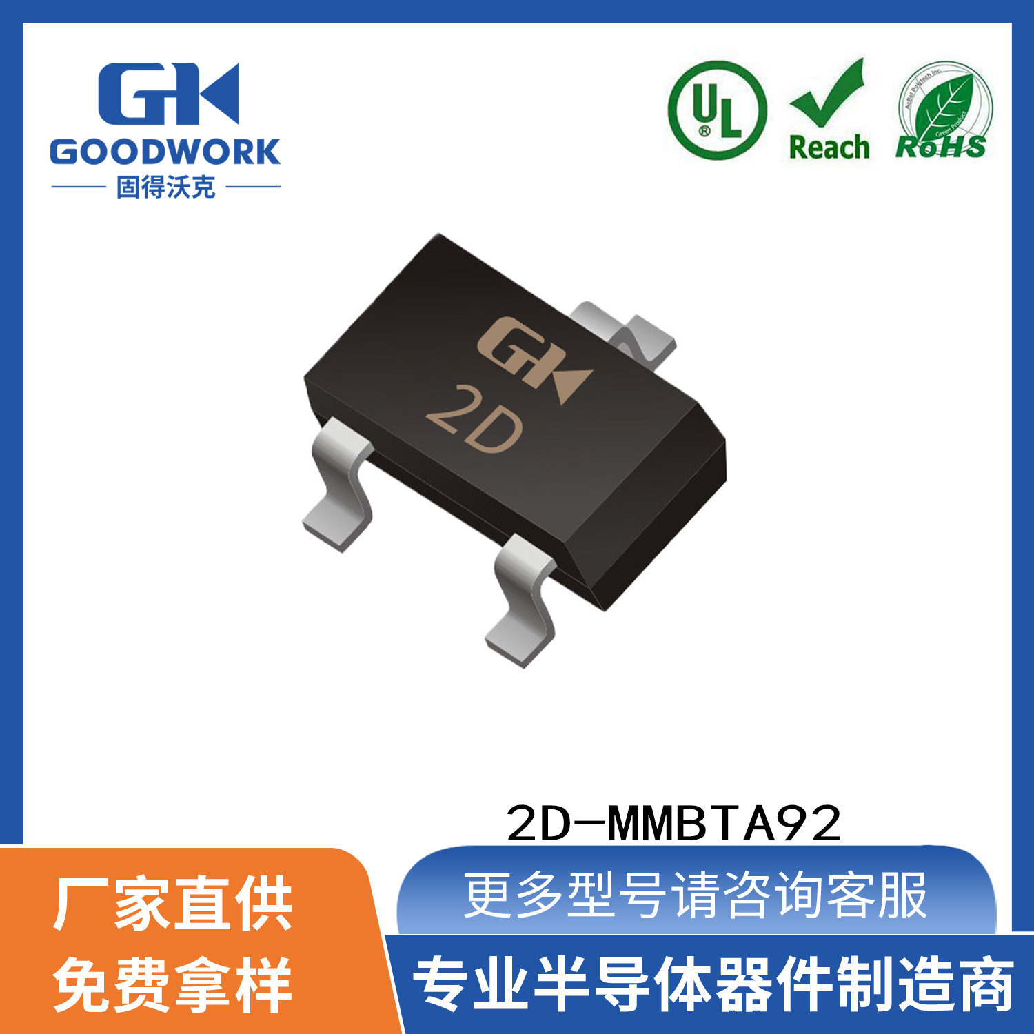 2D-MMBTA92 SOT-23パッケージ -0.2A-300V GOODWORK SMDトランジスタ