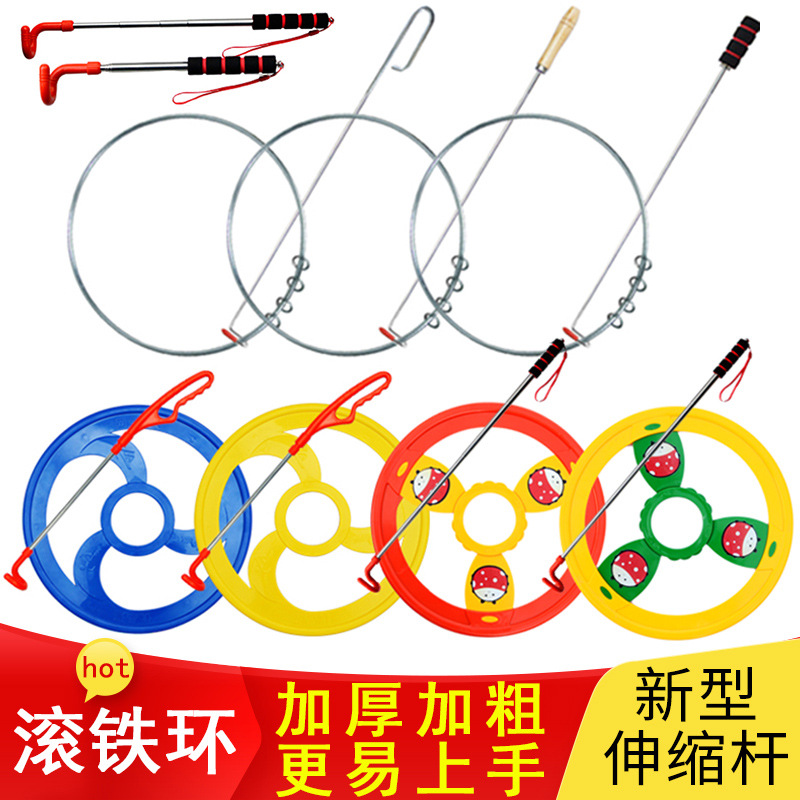子供用ローリングフープ、幼稚園、小学生、子供の頃のノスタルジックなソリッドプッシュホイール、ローリングフープ