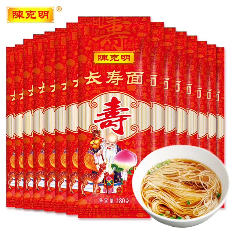 陳克明長寿麺誕生日麺180g喜面贈答老人寿星龍須そうめん細かい包装お返し