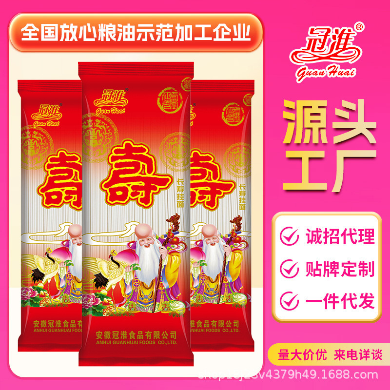 冠淮長寿麺500グラム袋入り麺麺の箱全体のロット龍ひげ麺喜麺誕生日麺線面