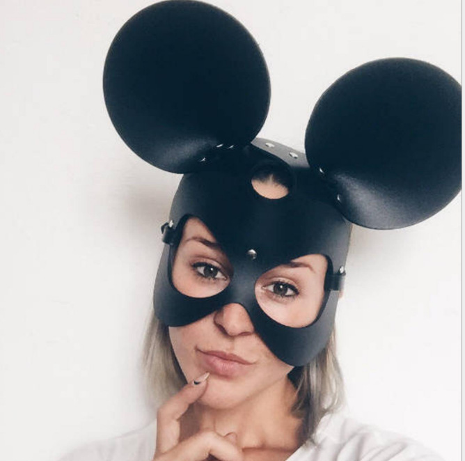 新商品の黒い猫のマスクはメガネのおもちゃをいじります。