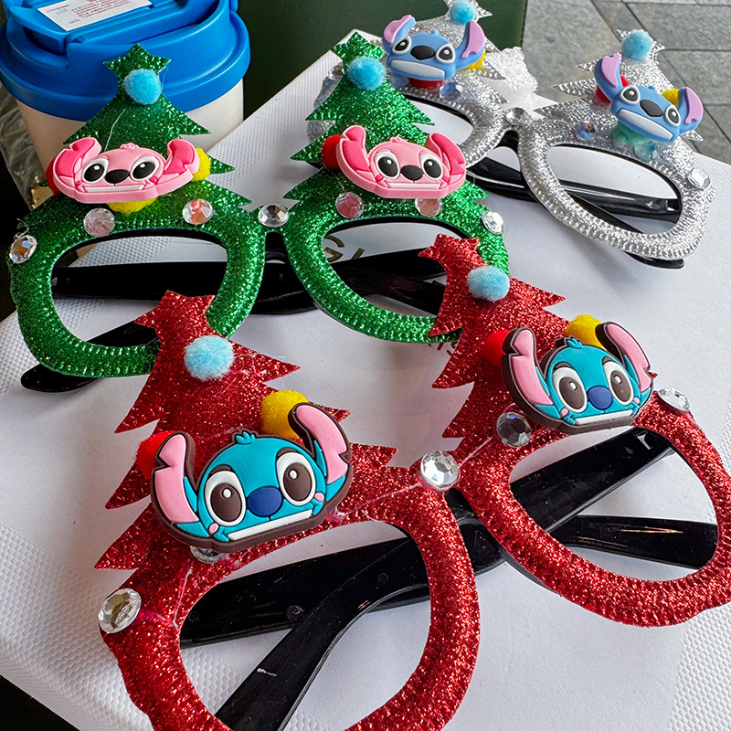 漫画リロとスティッチクリスマス装飾大人と子供のための漫画グリッタードレスアップおもちゃメガネクリスマスツリー