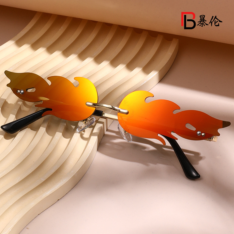 9076個性的なフレームレスレインドロップサングラス、オーシャンレンズ、クラウドサングラス、欧米ファッションストリートスタイルメガネ