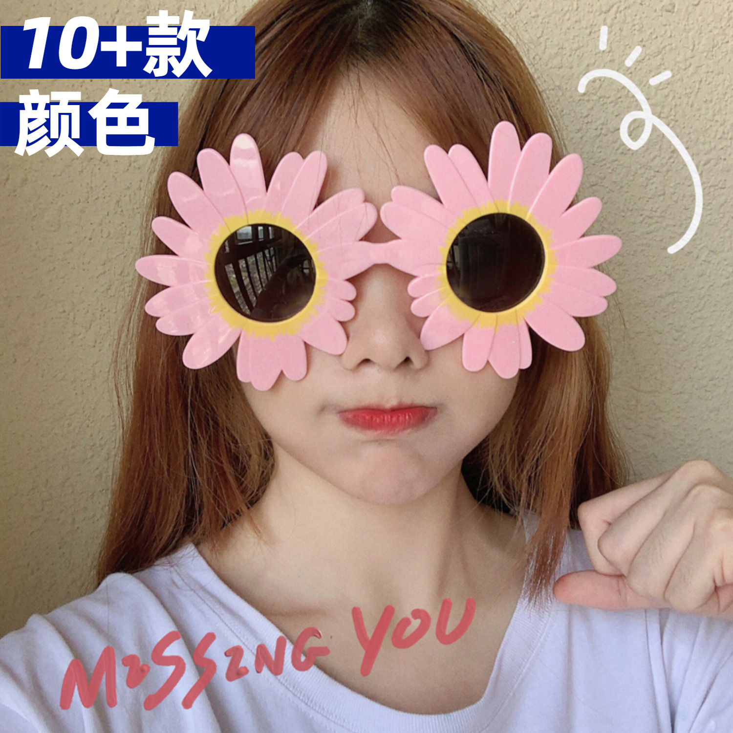 装飾メガネパーティーのおかしな道具の太陽の花の小さい菊の花の形の写真を撮る道具のプラスチックの形のサングラス