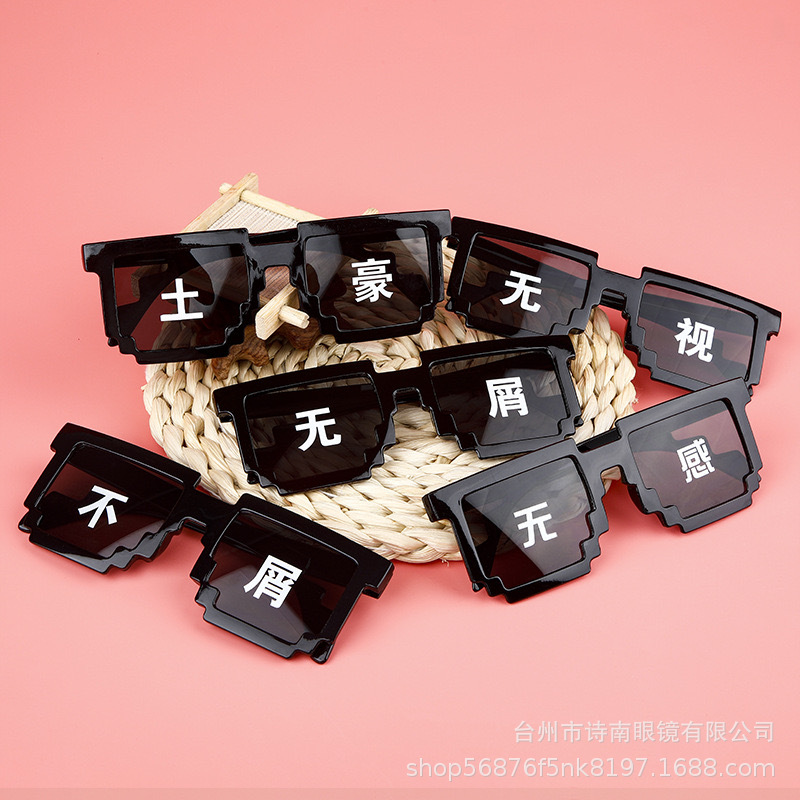 大小モザイクメガネ、おもしろサングラス、ネットセレブ同型、二次元風サングラス、個性的で前衛的な装飾メガネ