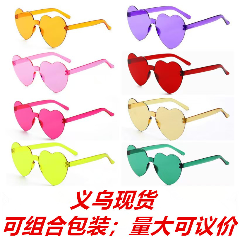 ワンピース ピーチ ハート サングラス ラブ メガネ ゼリー カラー リムレス ハート型ワンピース サングラス