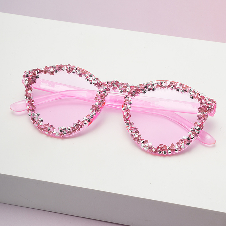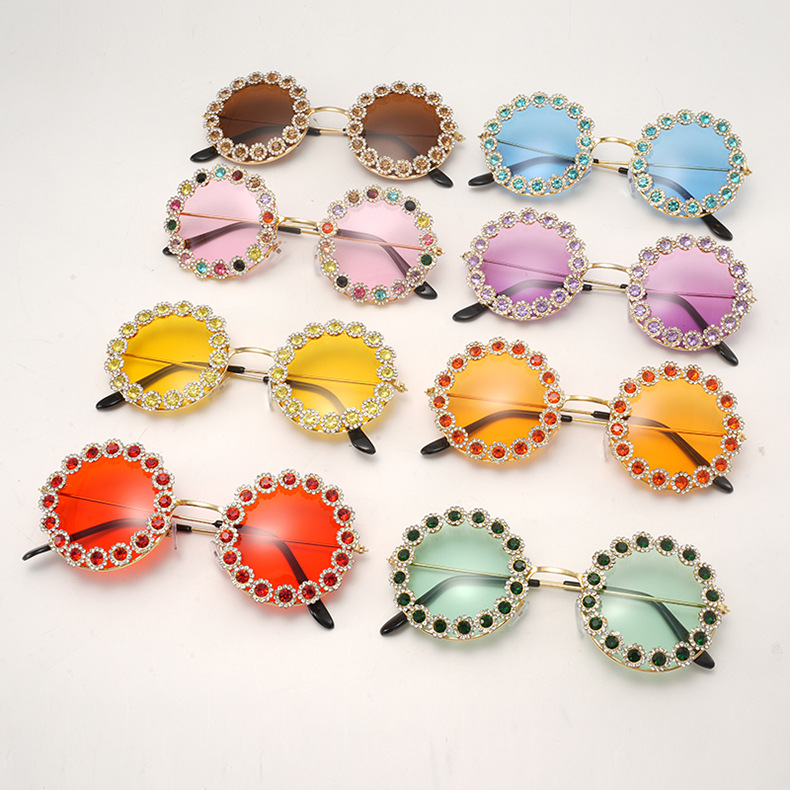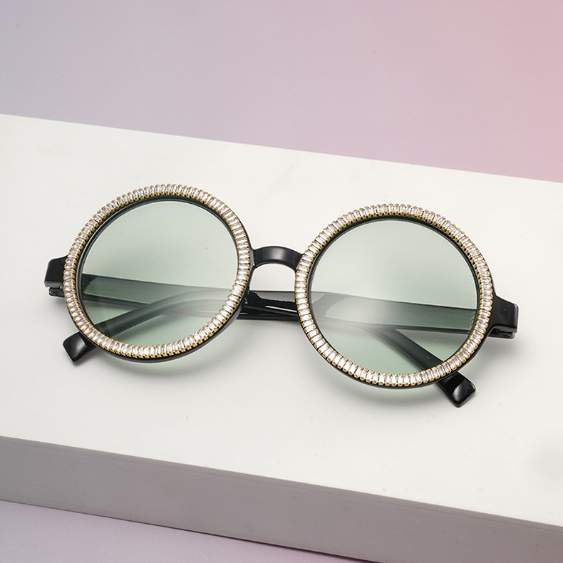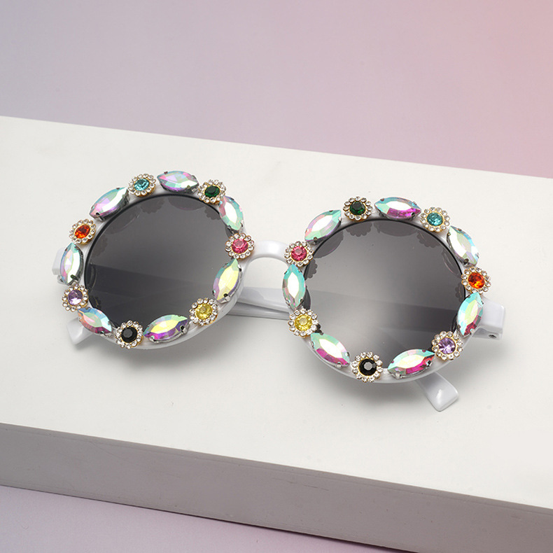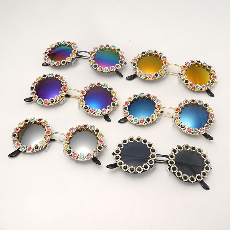 2025 新しいクロスボーダーラウンドダイヤモンドレディースサングラスカラフルなダイヤモンドメガネヨーロッパとアメリカのトレンディなメーカー卸売