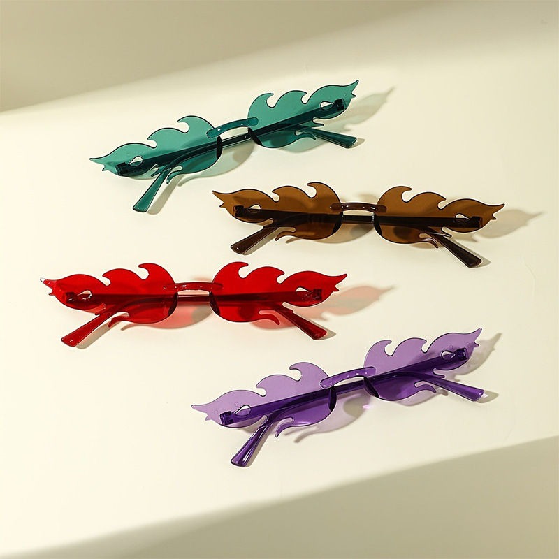 ヨーロッパとアメリカの新しいパーソナライズされた炎の形のサングラス、カラフルなオーシャンフレームレスサングラス、クロスボーダートレンディなサングラス