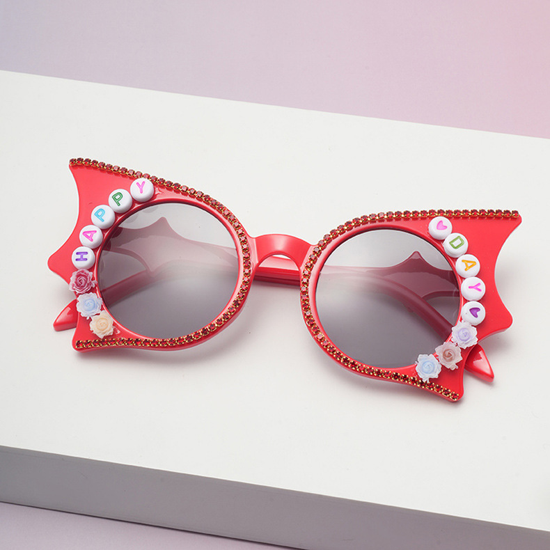 子供の漫画サングラスハッピーレターフラワー眼鏡パーソナライズされた面白いコウモリの形のかわいいベビーサングラス