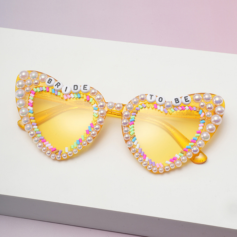 ブライダルサングラス BRIDE ファッション ラインストーン付き花嫁レターパールピーチハートレディースバチェラーパーティーサングラス