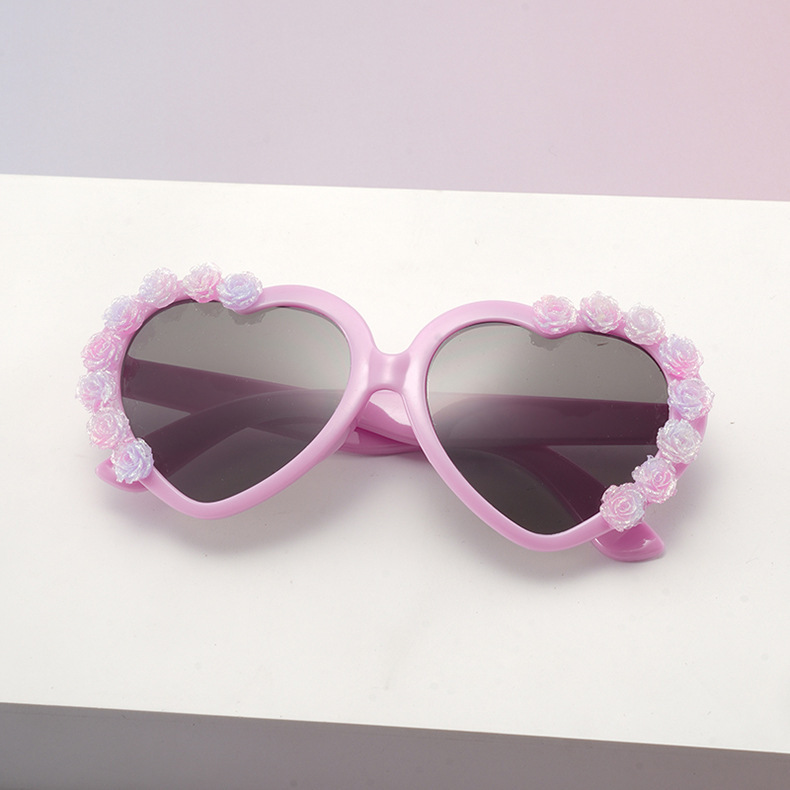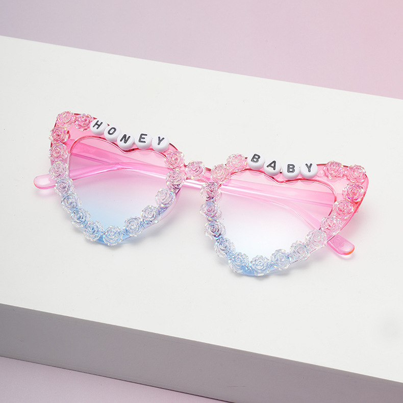 2025 新しいファッション子供のラブサングラスローズフラワーキッズサングラス英字ベビーメガネ
