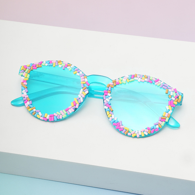 クロスボーダー新製品手作りキャンディーラウンドフレームサングラスサングラスパーティーサングラスレディースファッションパーソナライズメガネ