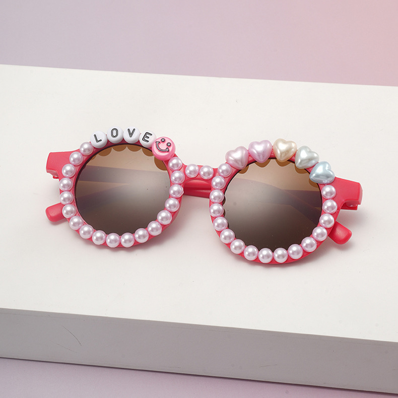 2025 新しい子供用サングラス、ラインストーン付きラブレターパールメガネピーチハートキッズパーティーベビーサングラス