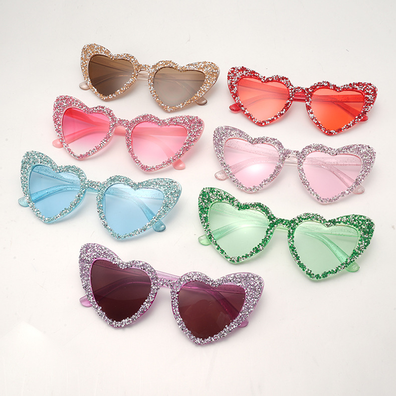 子供用ダイヤモンド付きサングラス、ヨーロッパとアメリカのクリエイティブなラブサングラス、誕生日パーティー、男の子と女の子、抗UV子供用メガネ