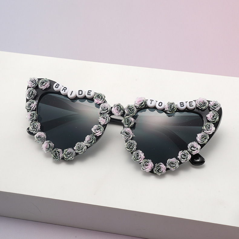 2025 新しいクロスボーダーラブサングラスオーロラローズフラワーサングラス英語文字ピーチハート日焼け止めメガネ
