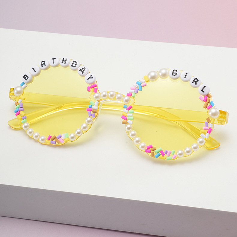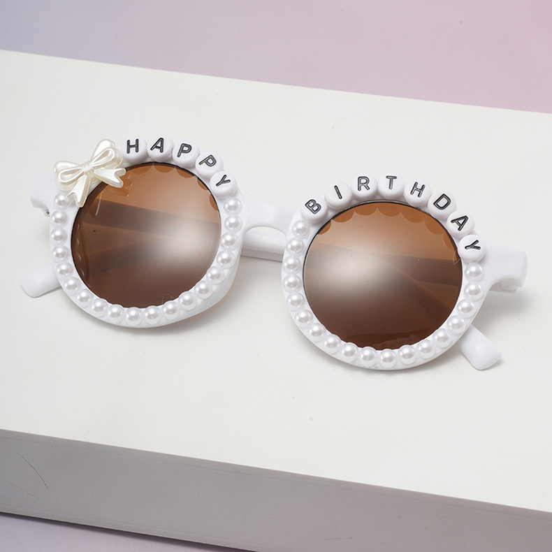 2025 新しいラウンド粘着英語アルファベットパール子供用サングラスベビー旅行ストリートスタイル子供用サングラス