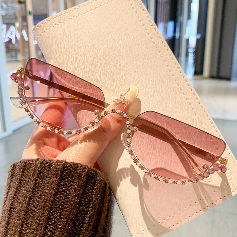 クロスボーダーの新しい蝶の形のダイヤモンドがちりばめられた女性用フレームレスサングラス、ファッショナブルな個性、誇張されたサングラス、ヨーロッパとアメリカのインターネットセレブの砕いたダイヤモンド