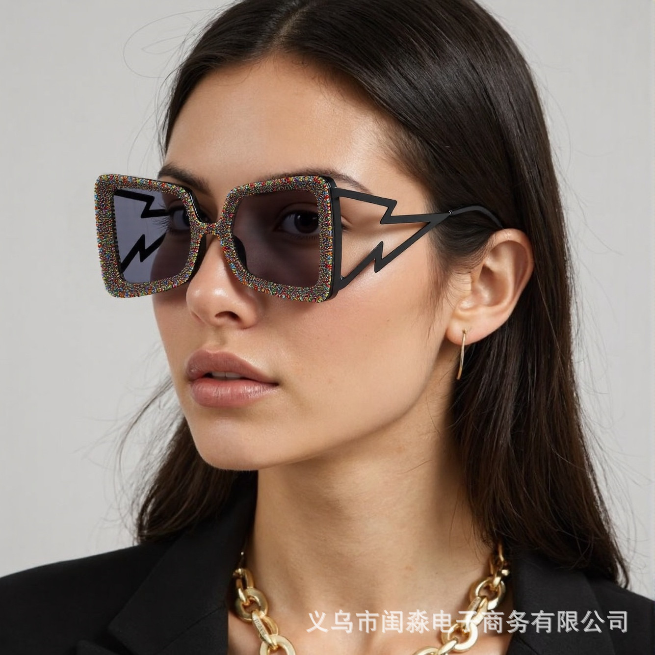 ヨーロッパとアメリカのクロスボーダー特大フレーム誇張メガネ象嵌ライトニングテンプルメタルステージショーバー誕生日パーティー