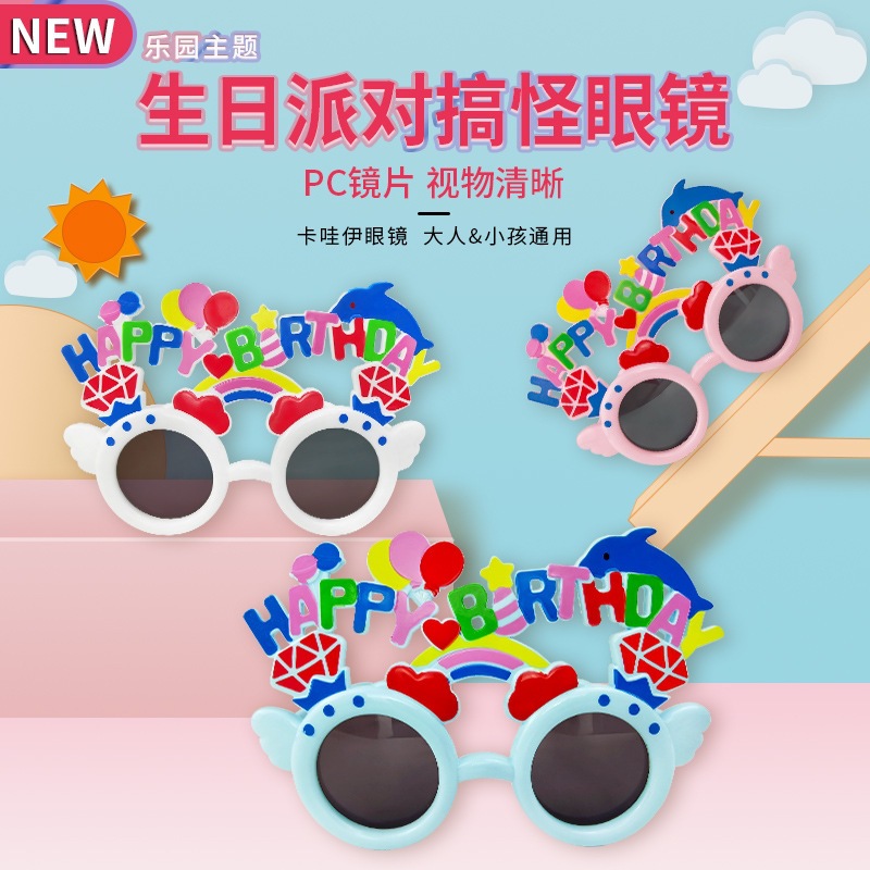 小红书同款生日眼镜儿童生日眼镜派对搞怪搞笑遮蓝光墨镜蛋糕摆件