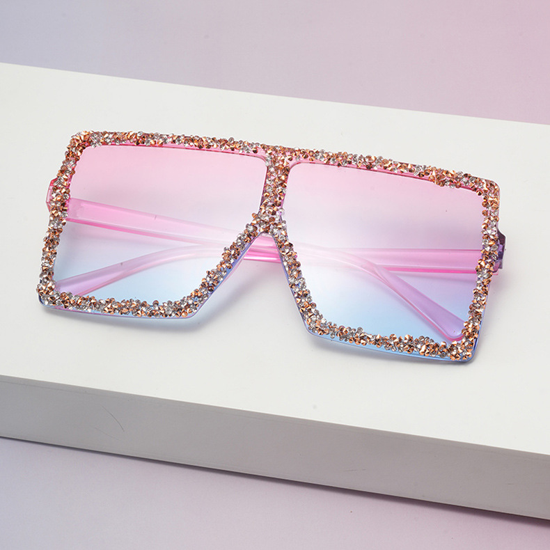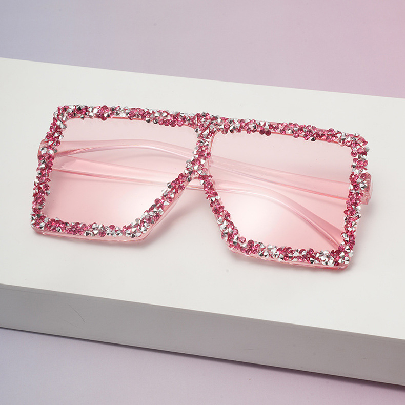 2026 ラージスクエアフレームピンクダイヤモンドサングラス新しいスタイルの女性用メガネトレンディなステージキャットウォークワンピースフェイスカバーサングラス