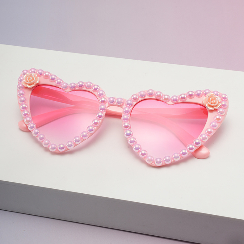 2025 新しいハート型パーティーメガネヨーロッパとアメリカのファッション愛サングラス女性のハイエンドパールサングラス卸売
