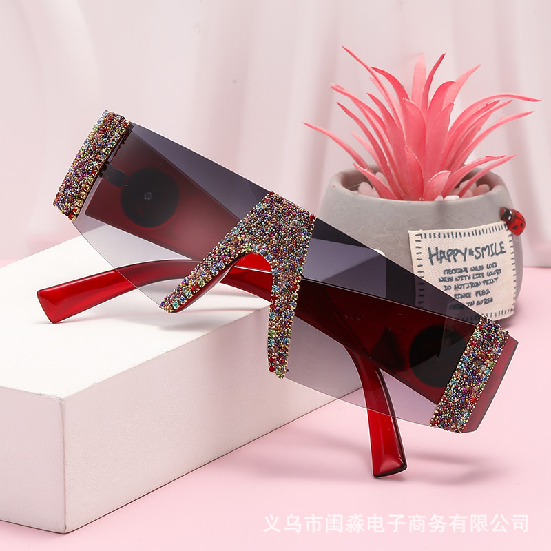 ヨーロッパとアメリカの高級ラインストーンパーソナライズされた女性用ワンピースサングラス、ファッショナブルでハイエンドのINSサングラス、男性用トレンディなサングラス
