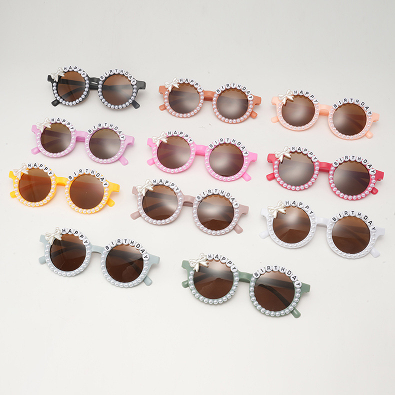 クロスボーダーファッションラウンドフレーム子供用メガネレトロマカロンサングラス新しいリボンパールサングラスメーカー