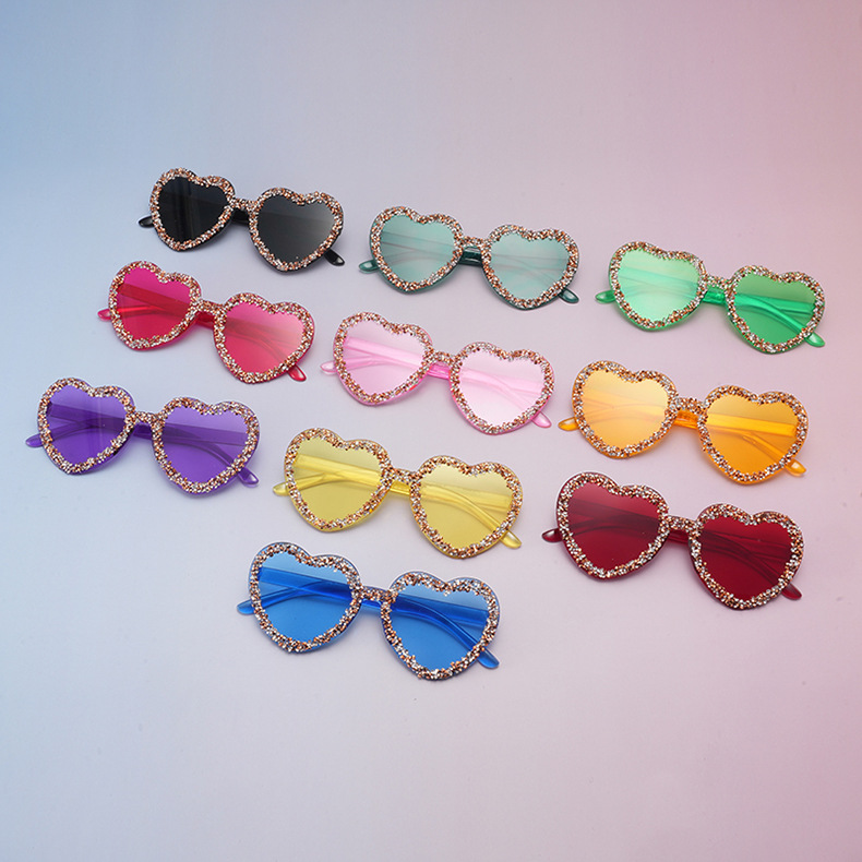 フレームレス愛サングラス子供の新型個性桃心子供サングラスネット赤舞踏会赤ちゃん眼鏡