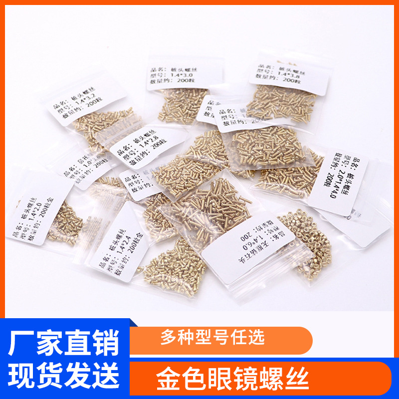 新品ゴールドメガネネジ修理部品メッキゴールドメガネ加工ネジメガネ部品约200粒/