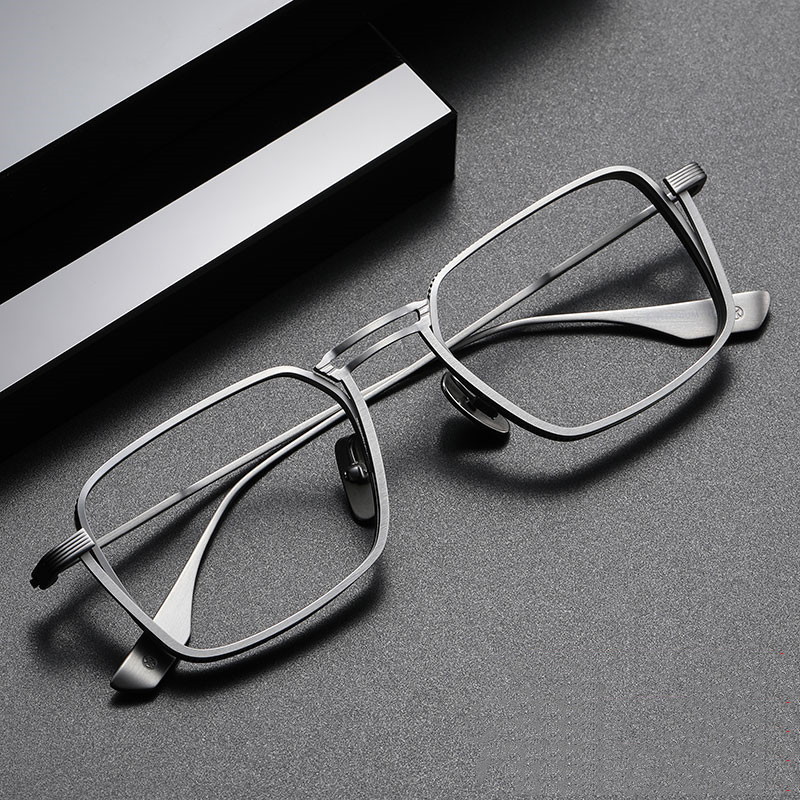 メガネ チタンフレーム レンズ 長方形 メタル メンズ メガネフレーム ビジネス 近視 メガネフレーム 軽量