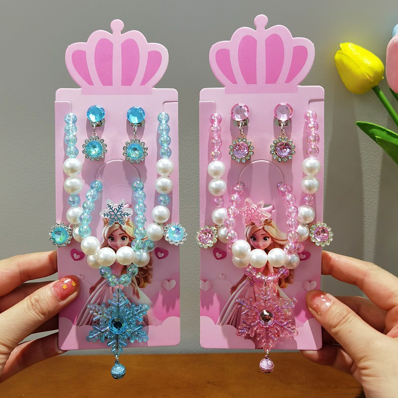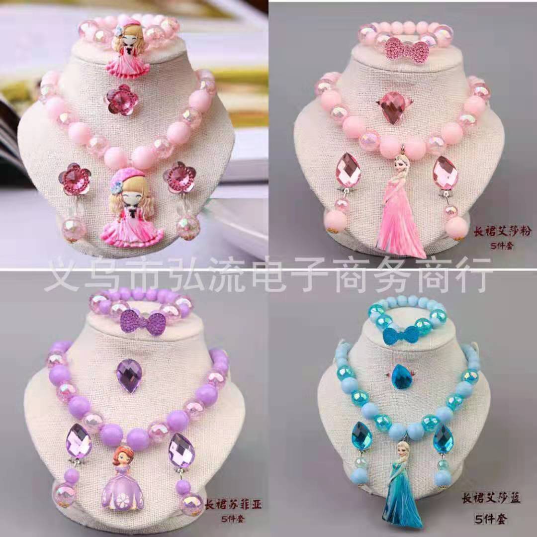 子供用ネックレスブレスレット耳クリップリングセット雪氷姫ネックレス子供ビーズジュエリーセット卸売り