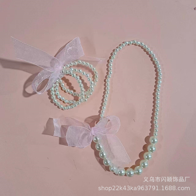 メーカー直販越境新作リボン真珠ネックレスセット子供用真珠ブレスレット