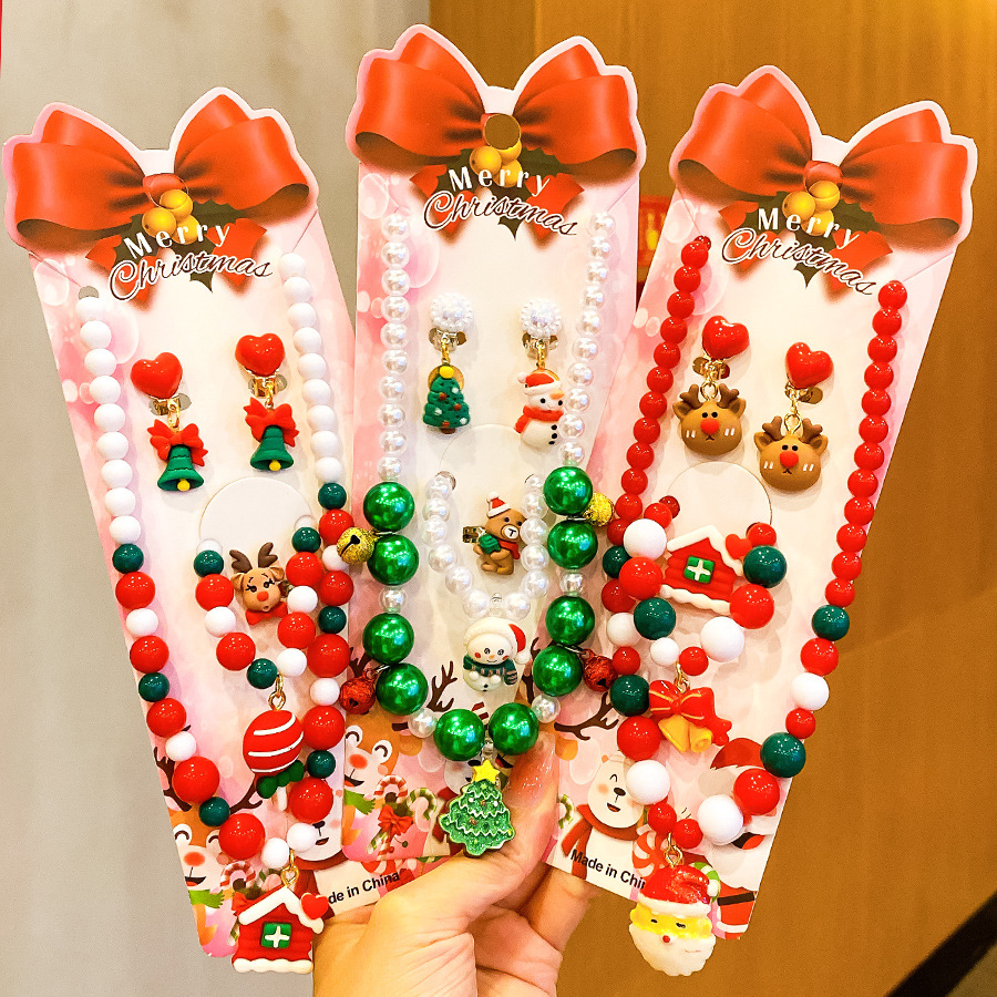 クリスマス子供用ネックレス、女性用イヤリング、指輪、かわいい漫画のトナカイ、女の子用プリンセスジュエリーセット、ネックレス、首飾り