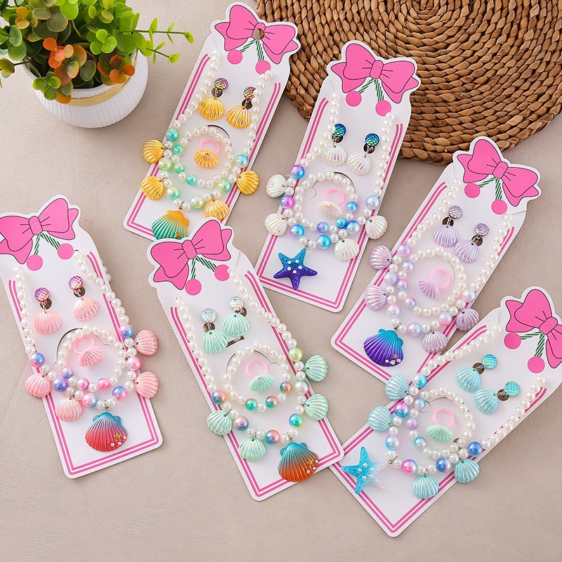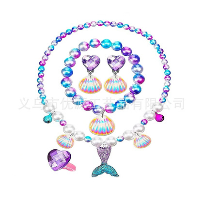 子供用ネックレスマーメイドテール女の子真珠ネックレスブレスレットリングイヤリングセット女の子赤ちゃんアクセサリー卸売